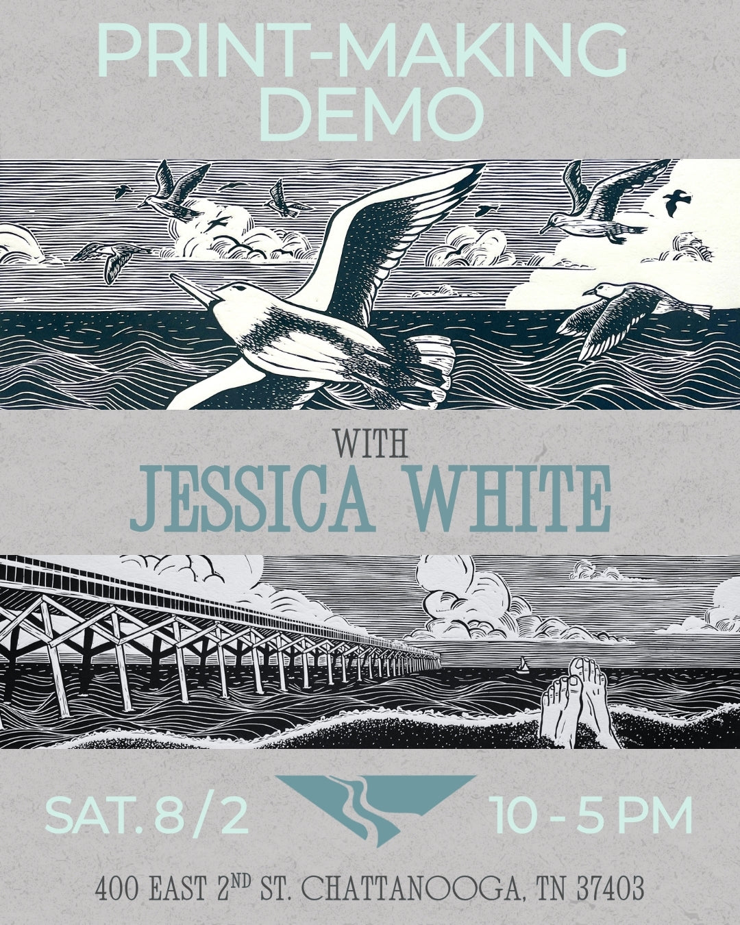 "Adrift" - Solo/small group exhibit at River Gallery in Chattanooga, TN. I'll be giving an artist talk an demo on wood engraving and crankies.