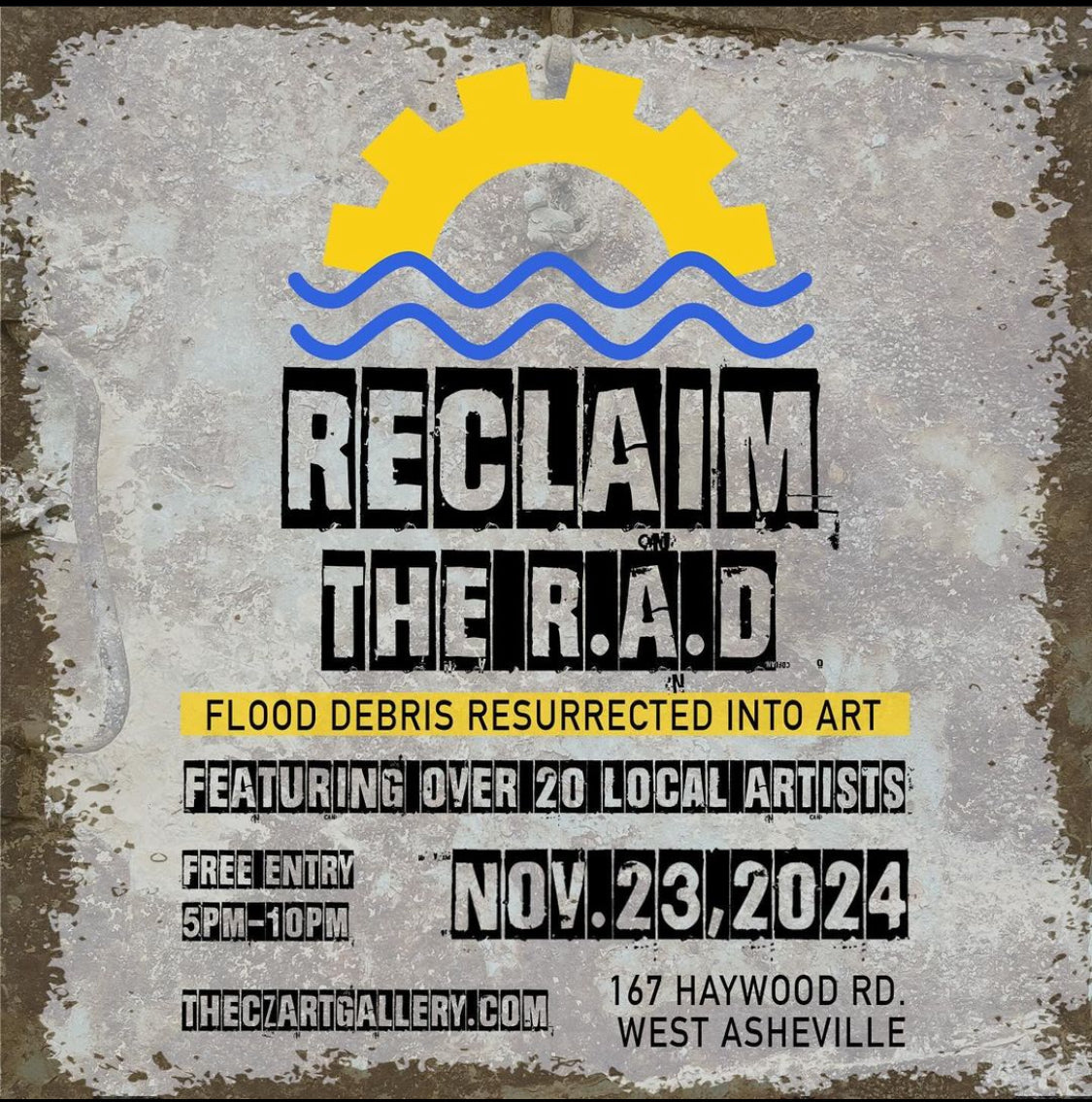 I'm so excited to participate in "ReClaim the RAD," an exhibit at the CZART Gallery featuring 20+ Asheville artists. These local artists will exhibit their creations on pieces of debris reclaimed from the flood after Hurricane Helene. This show is meant to insprie the community and help artists recover through creations we navigate the future of the arts district in Asheville.